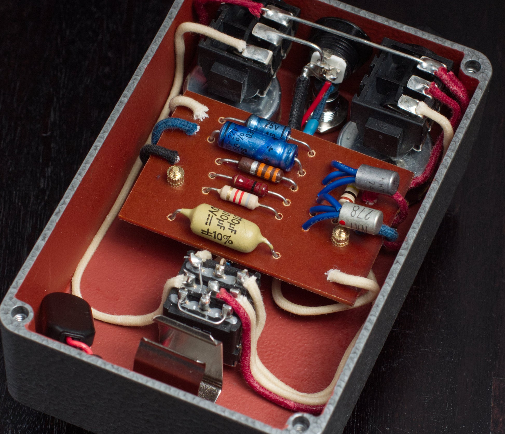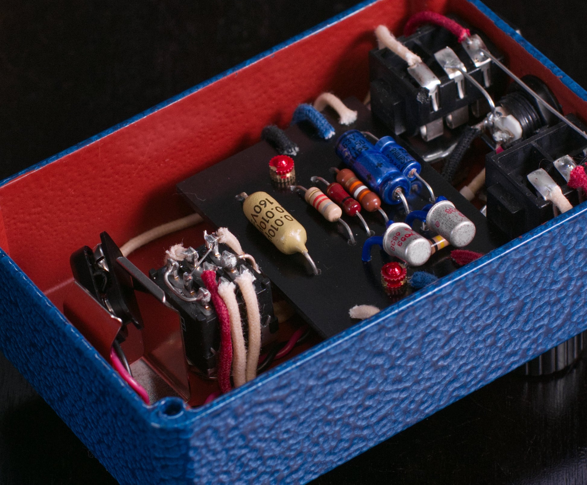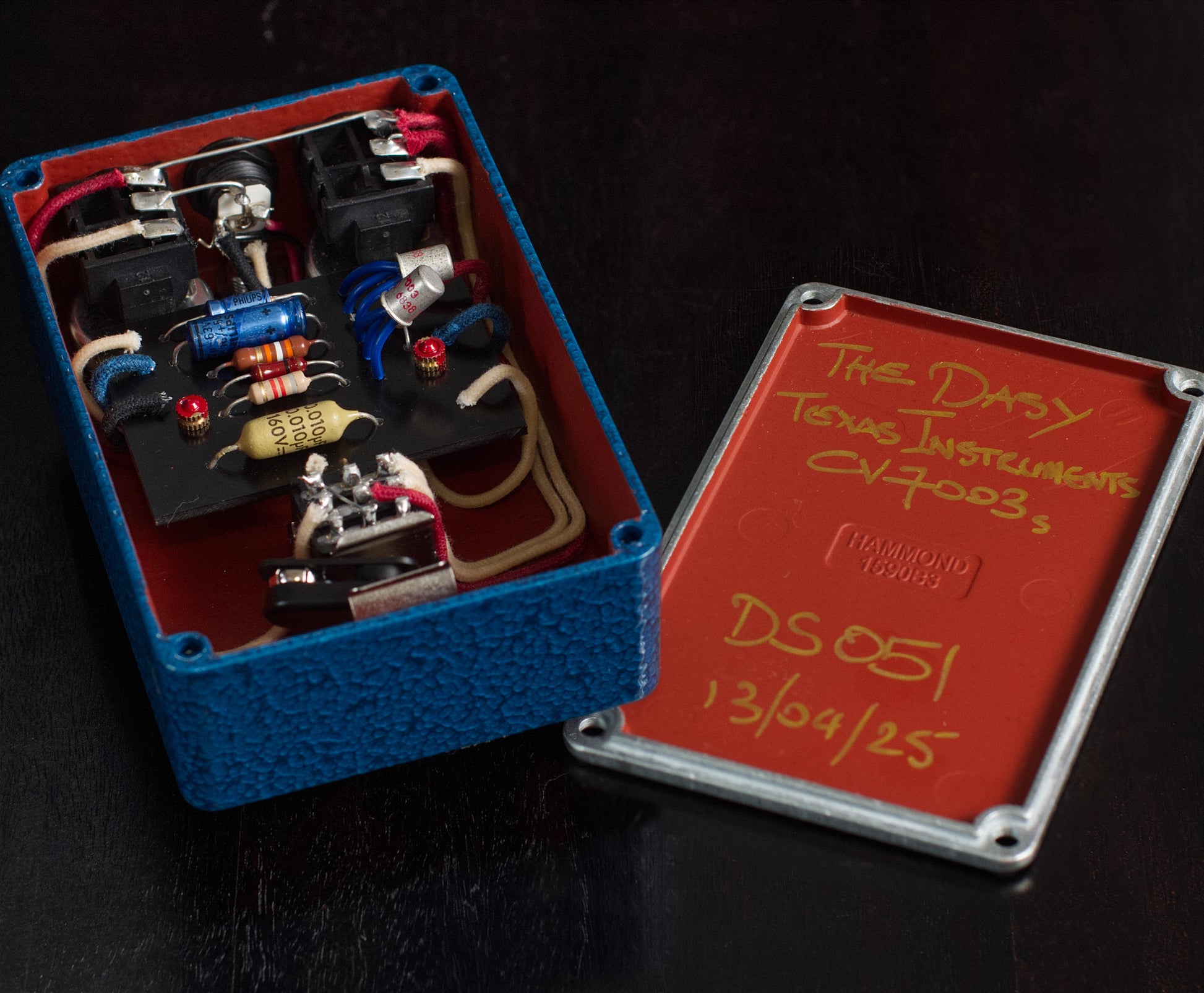 Each Van Diemens pedal is hand built, point to point, one at a time using carefully selected vintage components. When turning our pedals, we set standard transistor voltages at the beginning, but then finalize the setup tuning by ear, looking for the perfect sweet spot and finalise the bias once that point has been reached. We use classic pull back cloth wire and each board is hand crafted using either turrets, eyelets or through hole construction.