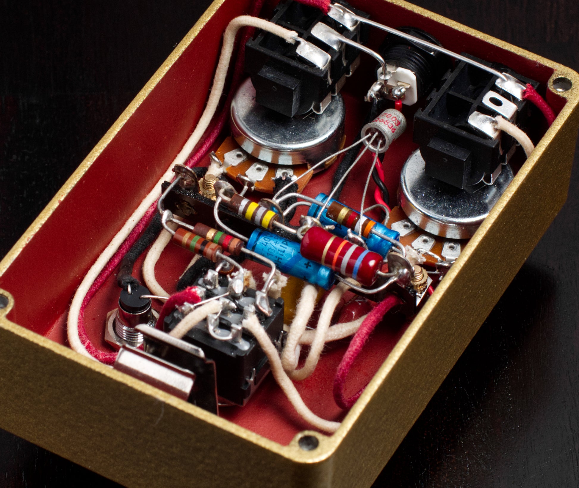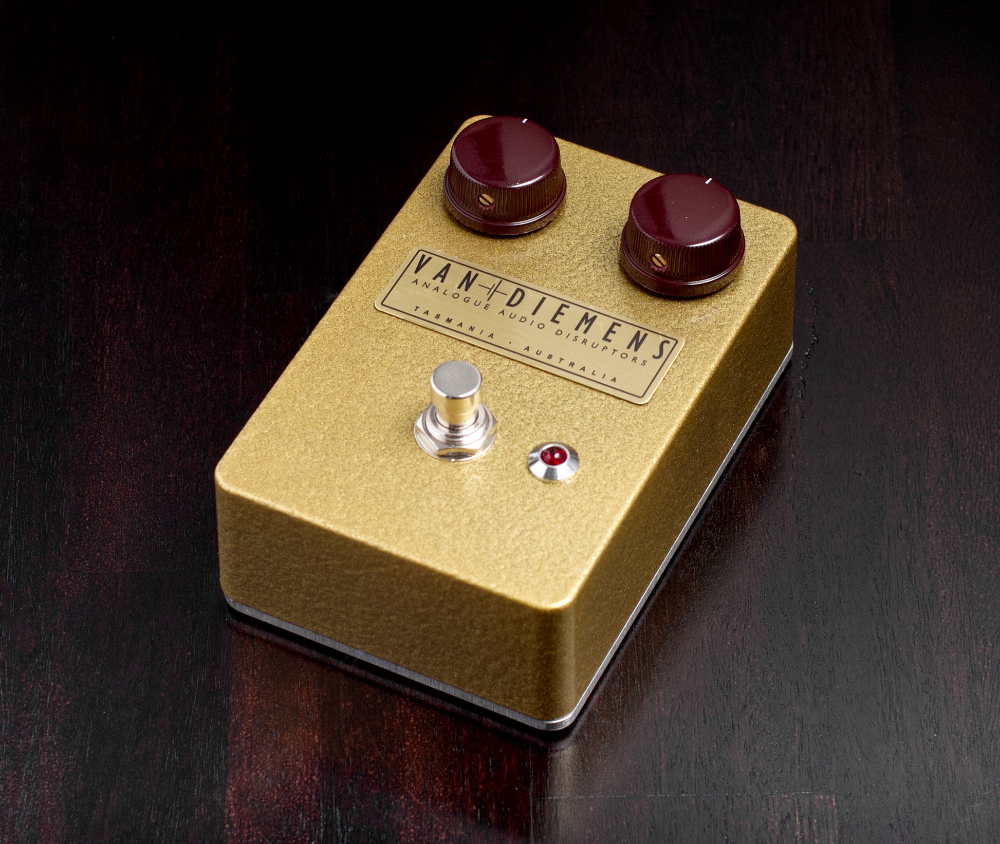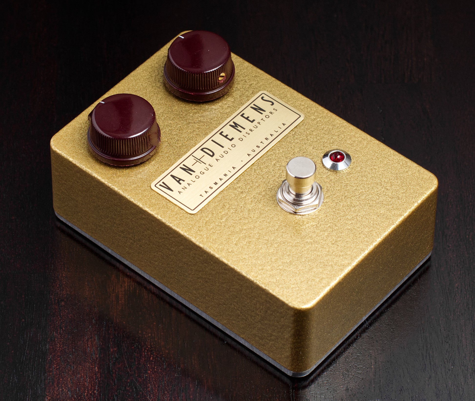 Each Van Diemens pedal is hand built, point to point, one at a time using carefully selected vintage components. When turning our pedals, we set standard transistor voltages at the beginning, but then finalize the setup tuning by ear, looking for the perfect sweet spot and finalize the bias once that point has been reached. We use classic pull back cloth wire and each board is hand crafted using either turrets, eyelets or through hole construction.