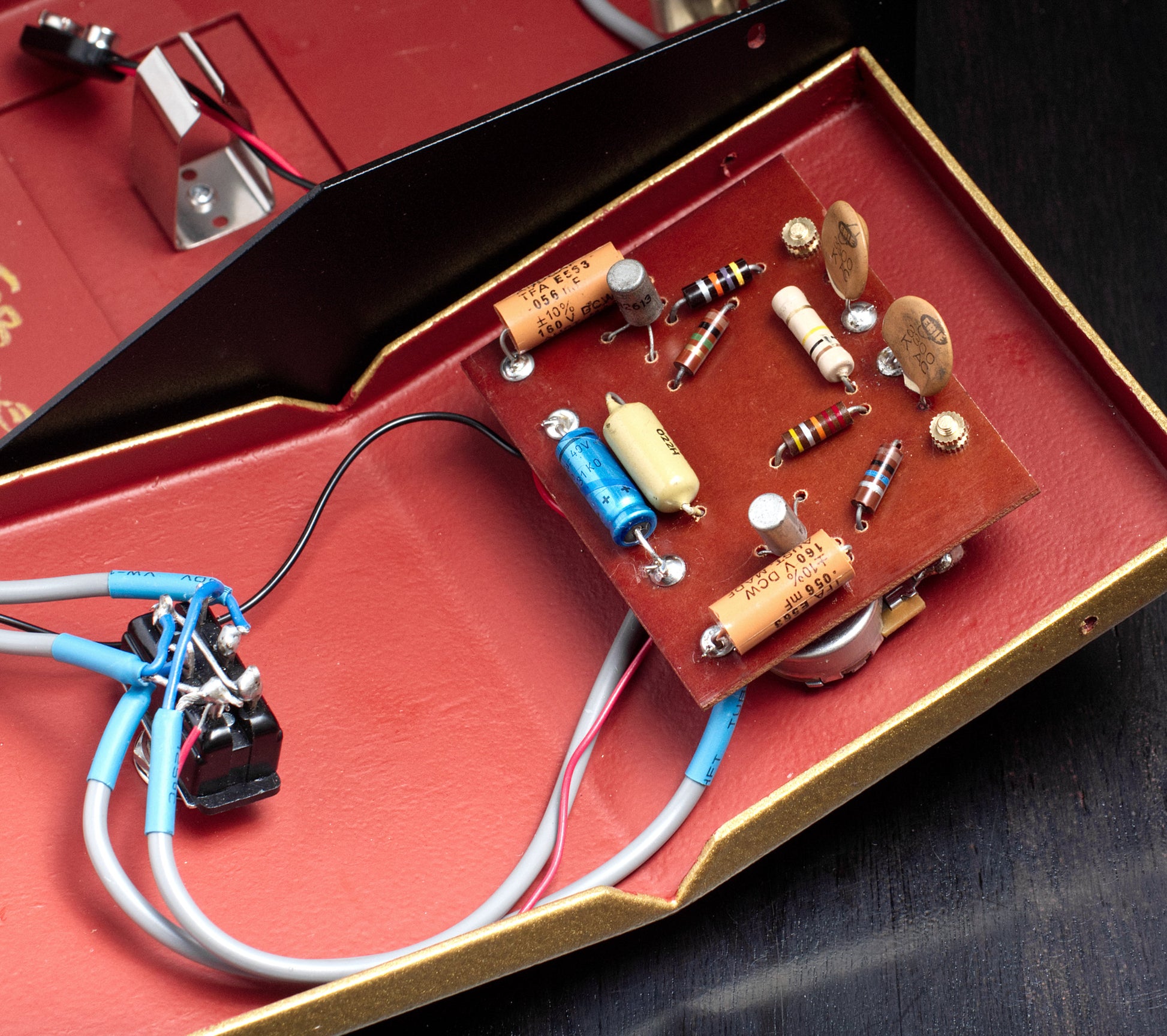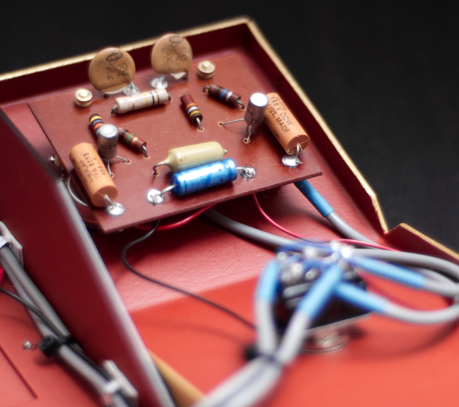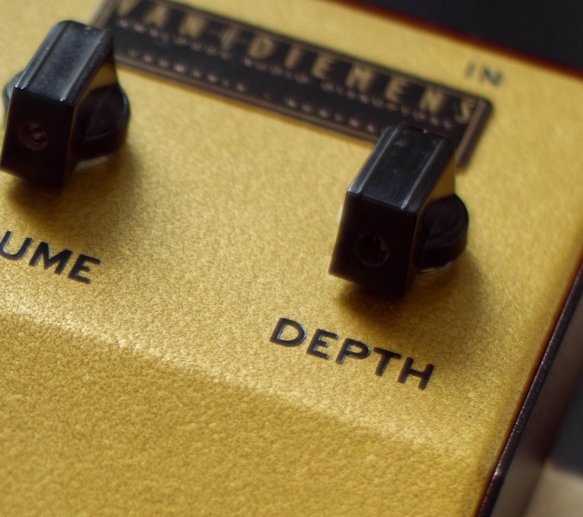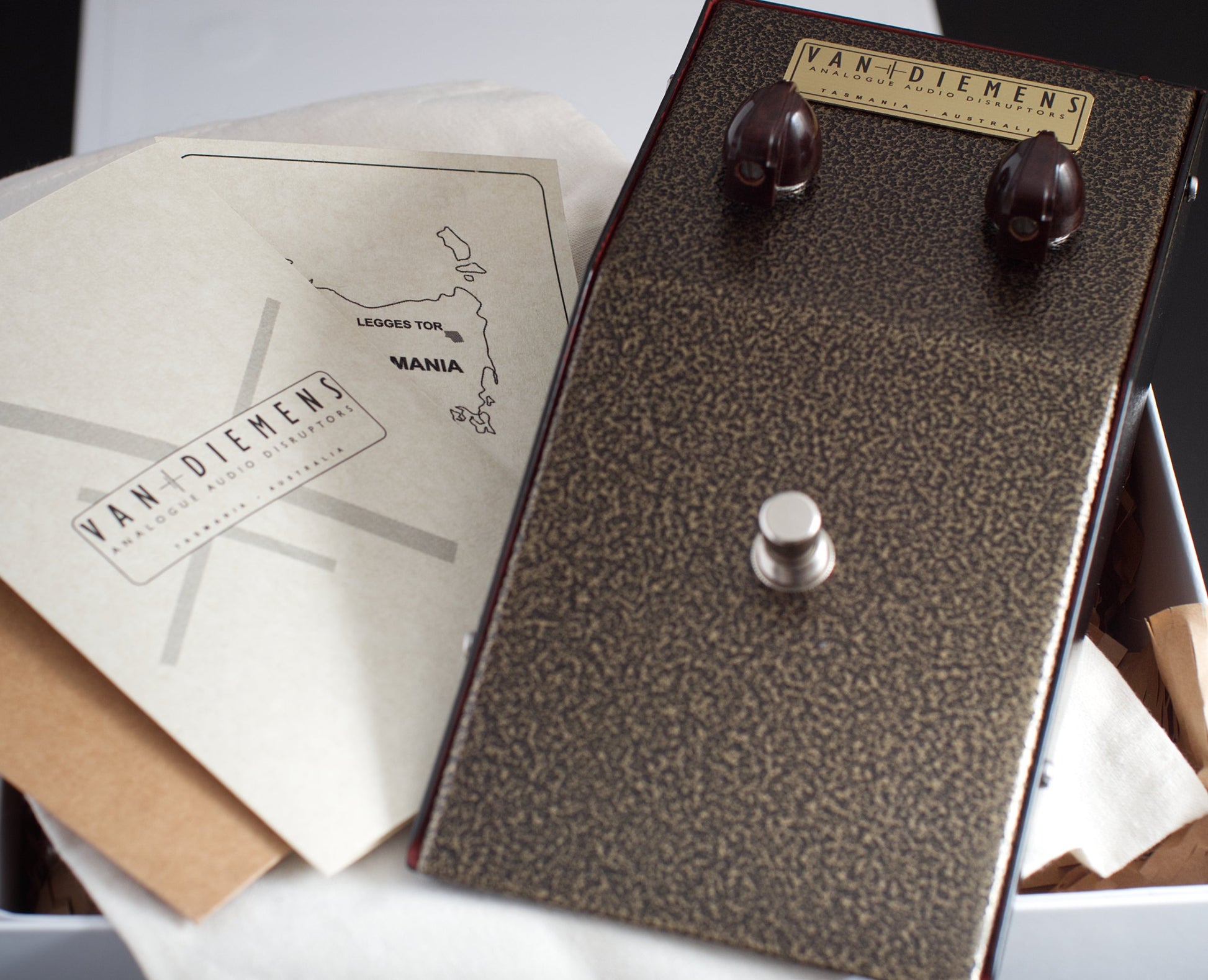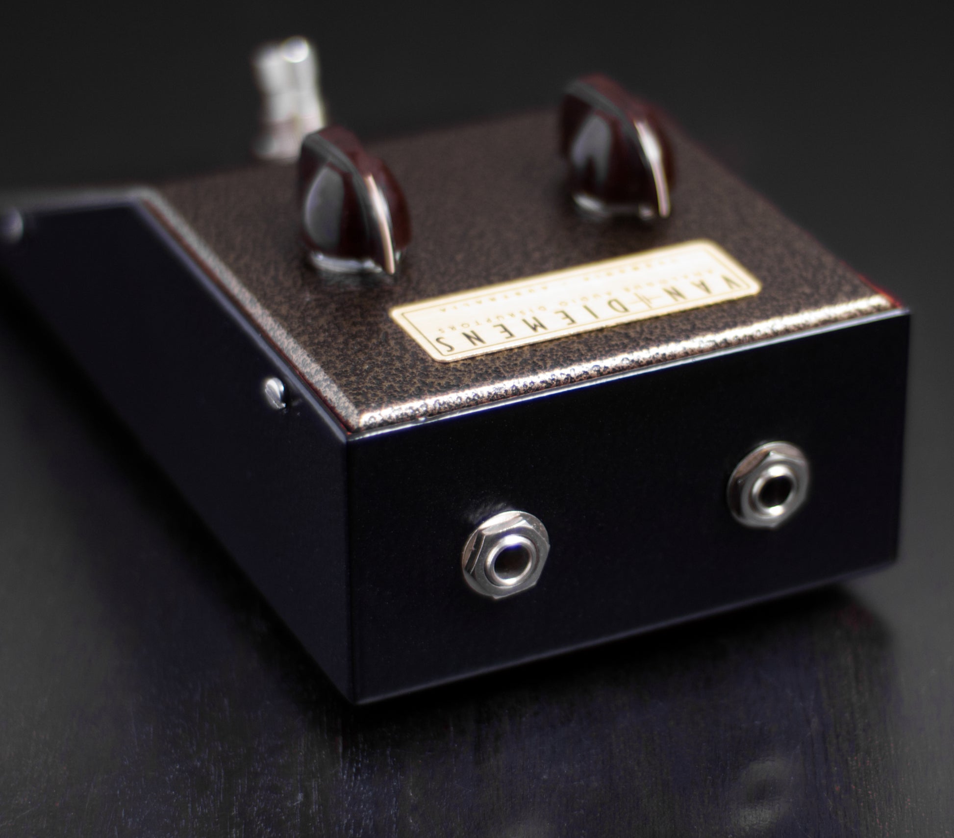 Each Van Diemens pedal is hand built, point to point, one at a time using carefully selected vintage components. When turning our pedals, we set standard transistor voltages at the beginning, but then finalize the setup tuning by ear, looking for the perfect sweet spot and finalize the bias once that point has been reached. The Deluxe model uses classic shielded wire and each 1960s phenolic board is hand crafted using either eyelets and through hole construction, wired point to point.